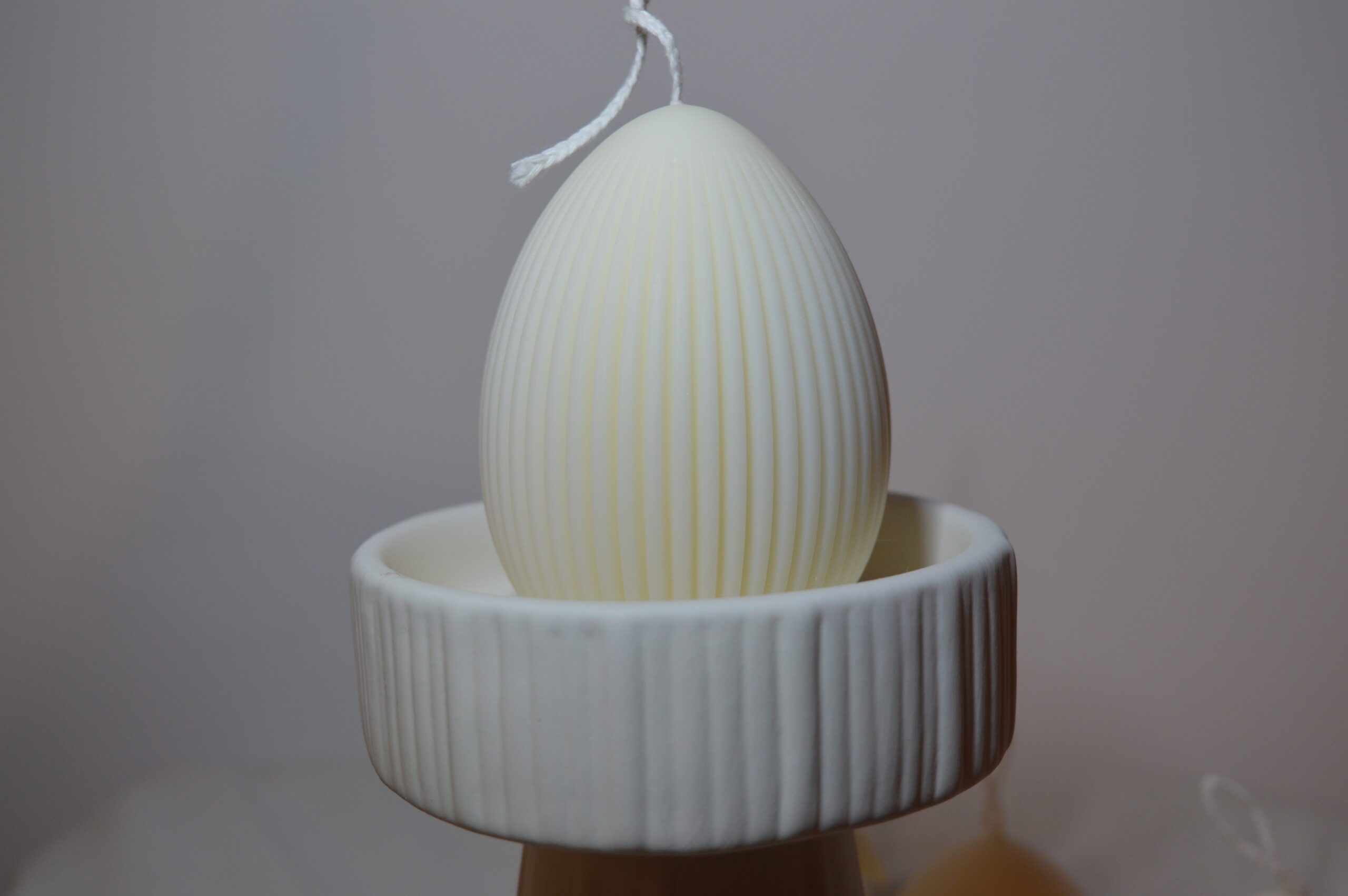 Świeca jajko wielkanocne ryflowane ecru L